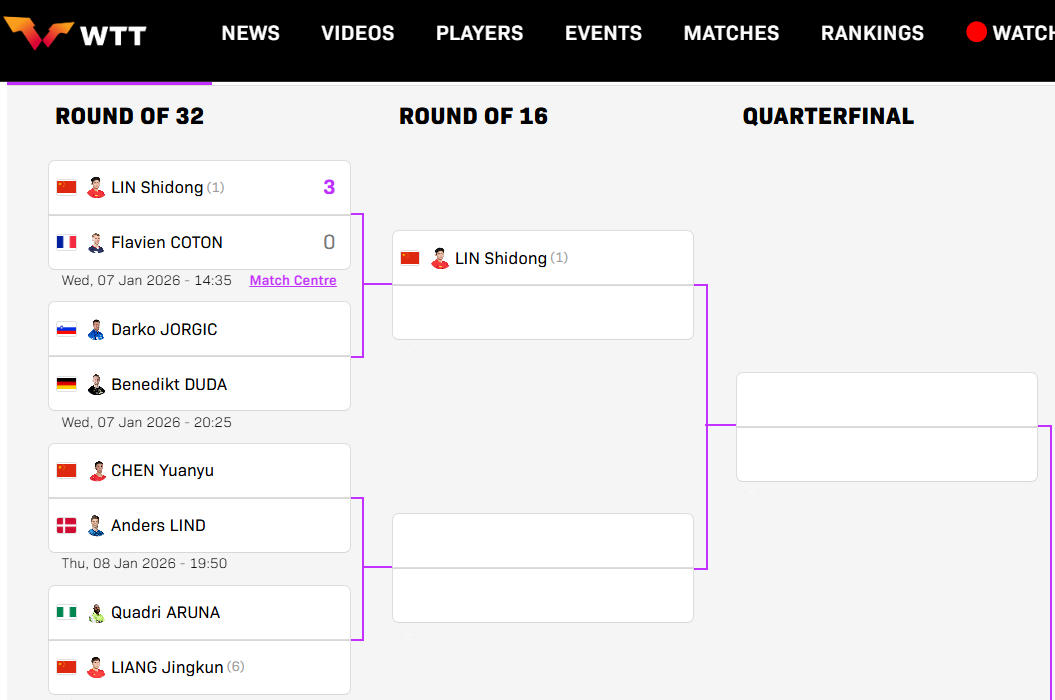 根据抽签结果,林诗栋所在的男子单打1/4区聚集了三位中国选手。除林诗栋外,还有梁靖崑、陈垣宇。按照赛程,若林诗栋与队友均顺利晋级,将在后续轮次上演“国乒内战”。