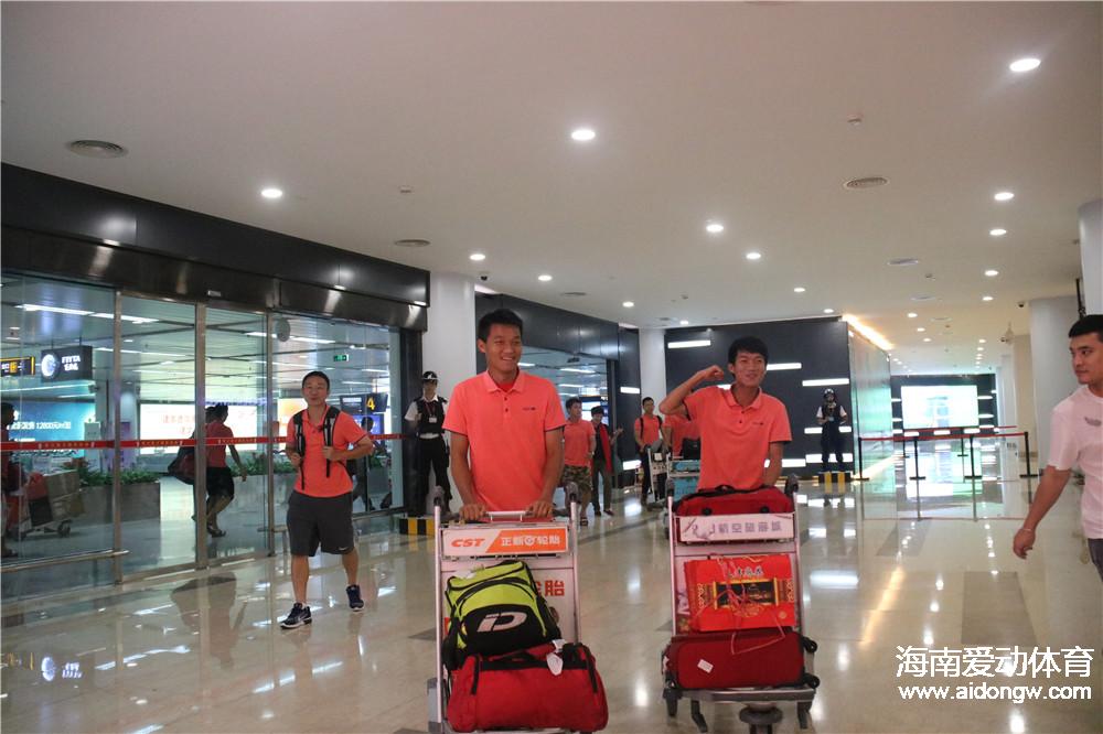 因为飞机晚点,海南代表队一行比原定时间晚了近5个小时抵达。连日的比赛加上旅途疲惫,但队员们的精神面貌非常不错。就在代表队走出出站口时,男队队员叶国栋和杨宁笑着对着记者说:“拍后面,拍后面,我们的女足姑娘们在我们身后。”