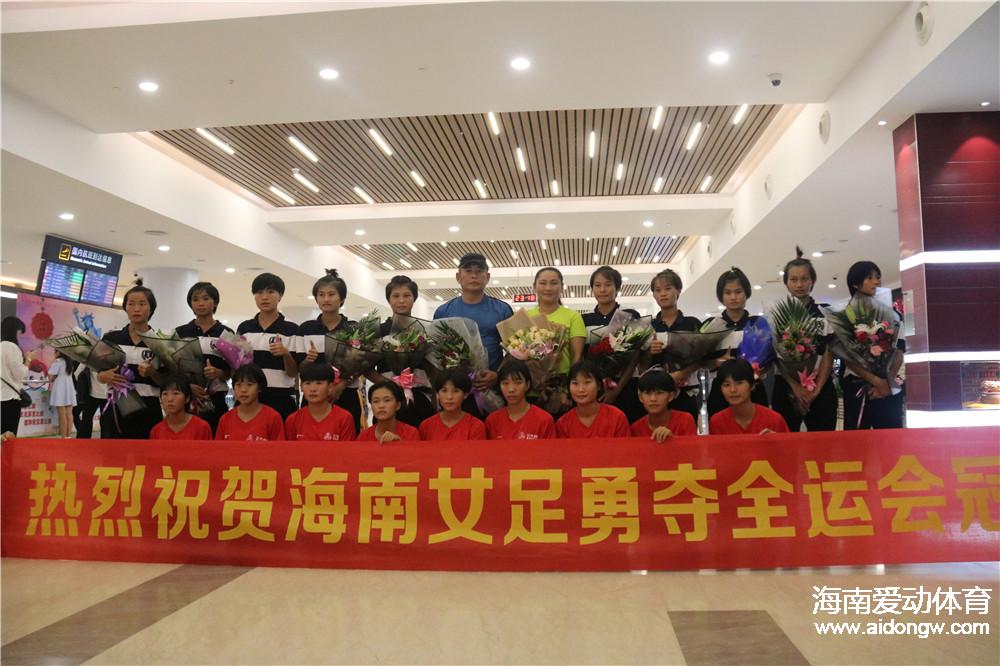 7月11日下午,海南女足在全运会首设的群众体育项目笼式足球比赛中夺得金牌。这是海南代表团在本届全运会上的首枚金牌,也是海南三大球首次参加全运会便取得历史性突破。海南男足也不负众望,取得男子组比赛第五名。两支队伍原定于12日傍晚"归岛",但因航班晚点5个小时,于22点56分抵达海口美兰国际机场。