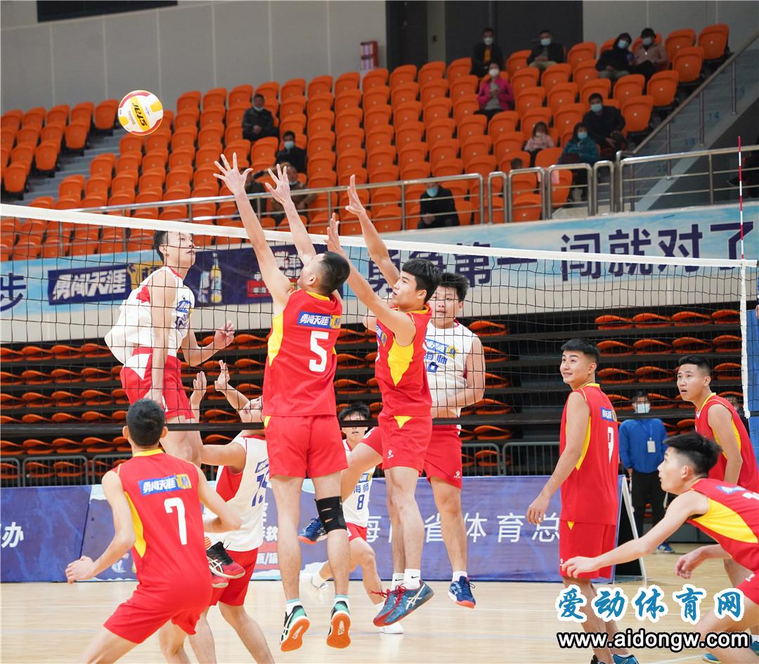 第三局,澄迈队火力全开以6:2开局,何传旦、曾王雄、吴清玺等人多点花开以18:13领先,海口队拦网得分后,澄迈队曾王雄扣球还以颜色,而何传旦两次跳发得分,直接以21:14拿下第三局,大比分2:1海口队。