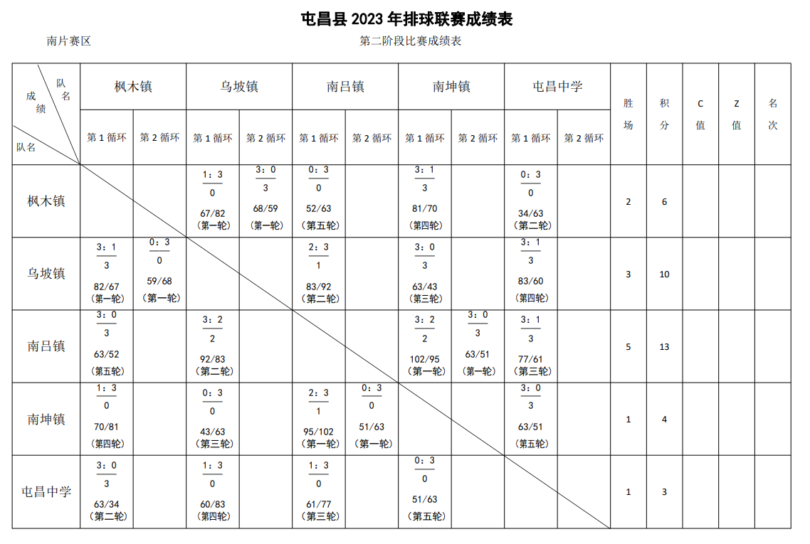经过5轮角逐,北区的思源高中取得4连胜、12积分,坡心镇4胜1负12积分,屯城镇、新兴镇均为2胜3负6积分,西昌镇则未尝胜绩;南区方面,南吕镇豪取5连胜、13积分,领跑积分榜;紧随其后的乌坡镇3胜2负10积分,枫木镇2胜3负6积分,南坤镇1胜4负4积分,屯昌中学1胜3负积3分。