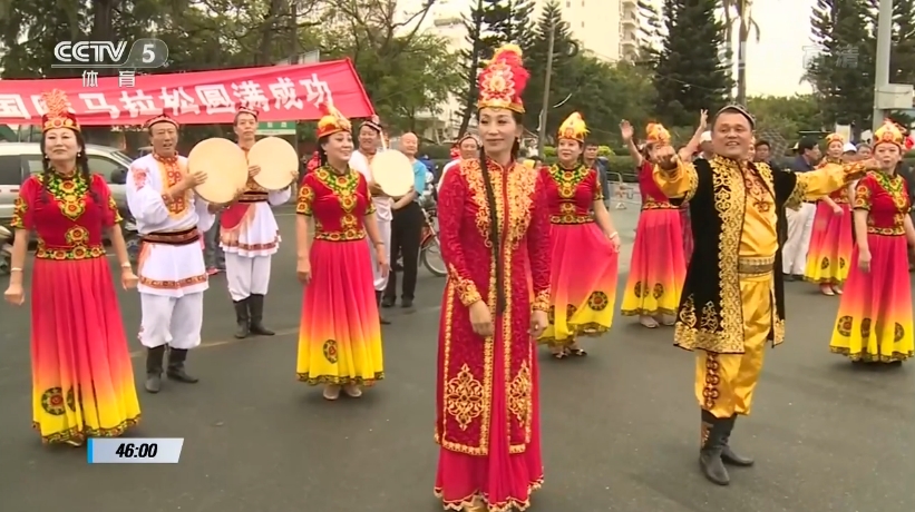 一大清早,动感的音乐吸引了大批市民的驻足围观