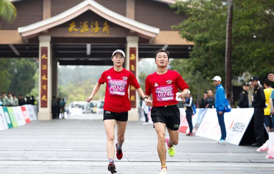 前奥运冠军吴敏霞与男友张效诚从起点出发,携手跑到天涯海角。这是他们爱情的见证,也是赛事的一大亮点。在半马终点天涯海角,跑友陈潇手捧99朵玫瑰向女友孙雨景告白。“就算没有别的礼物,但是陪着她一起跑完半马,对我来说就是最幸福的事情。”陈潇激动的说。