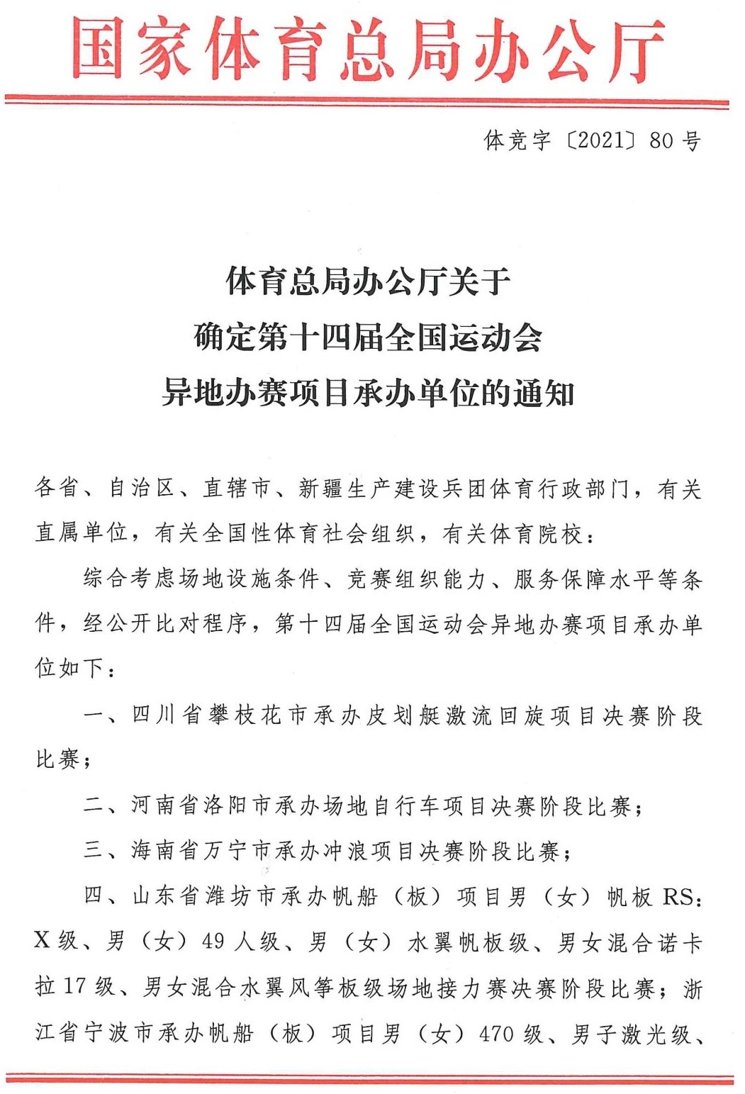 爱动体育讯 近日,国家体育总局发布《体育总局办公厅关于确定第十四届全国运动会异地办赛项目承办单位的通知》,确定海南省万宁市为“第十四届全国运动会冲浪项目决赛阶段比赛”承办单位。