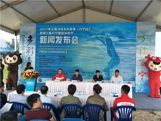 爱动体育讯 12月5日,2017年全国冲浪系列赛(万宁站)暨第八届年万宁国际冲浪赛新闻发布会在万宁日月湾举行。