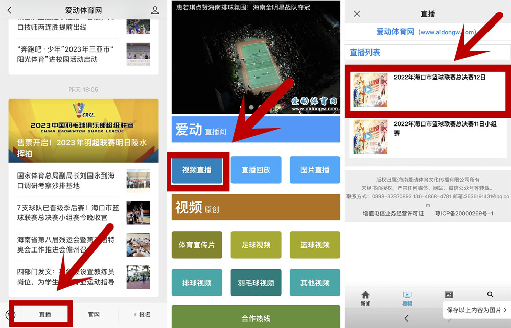 2、点击左下角菜单栏【直播】进入【视频直播】,即可观看2022年海口市篮球联赛总决赛;