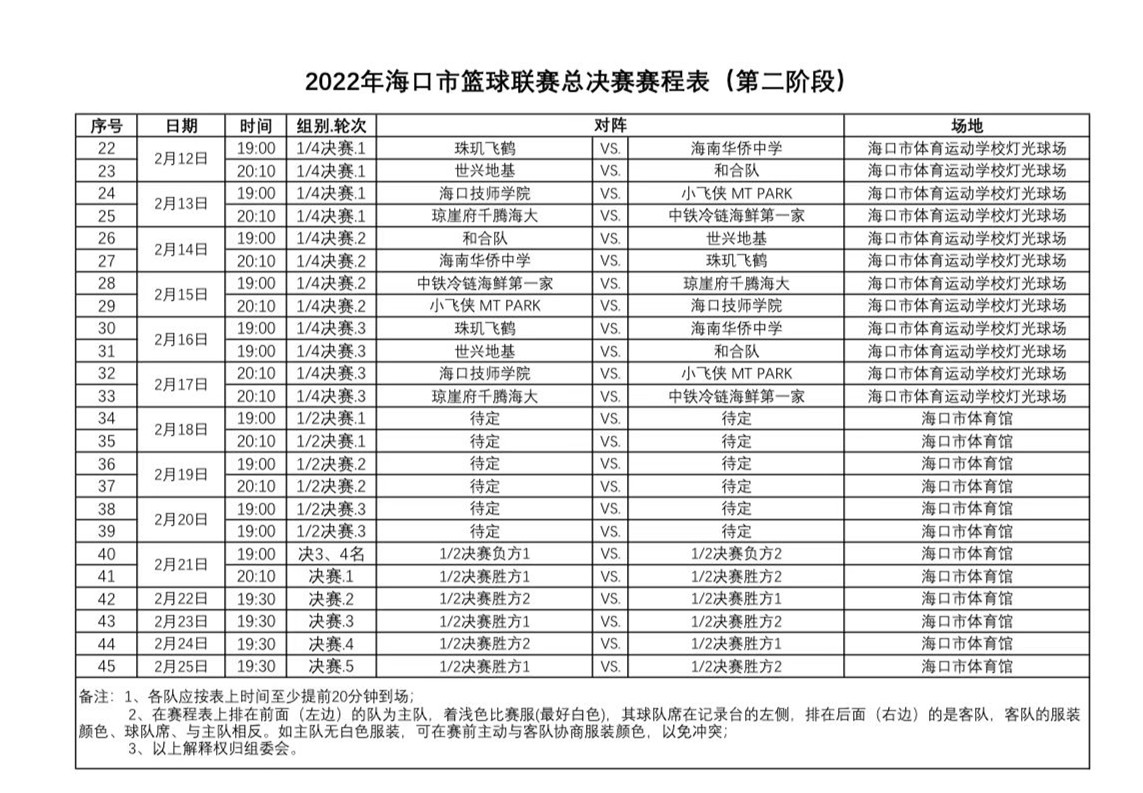 当晚,8支晋级2022年海口市篮球联赛总决赛季后赛的球队进行抽签,八强对战表随即出炉: