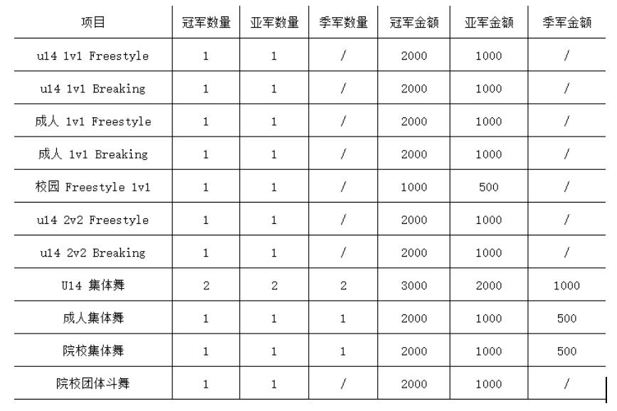 其中,14岁及以下的青少年,将角逐1V1Freestyle、1V1Breaking、2V2Freestyle、2V2Breaking和集体舞项目。成人组的18周岁及以上的成年人将角逐1V1Freestyle、1V1Breaking、集体舞(kpop翻跳)。而院校组的比拼则是面向省内外高校街舞社团、专业舞蹈院校团队招募,学生们将比拼集体舞(kpop翻跳)、校园团队斗舞、校园Freestyle1V1。