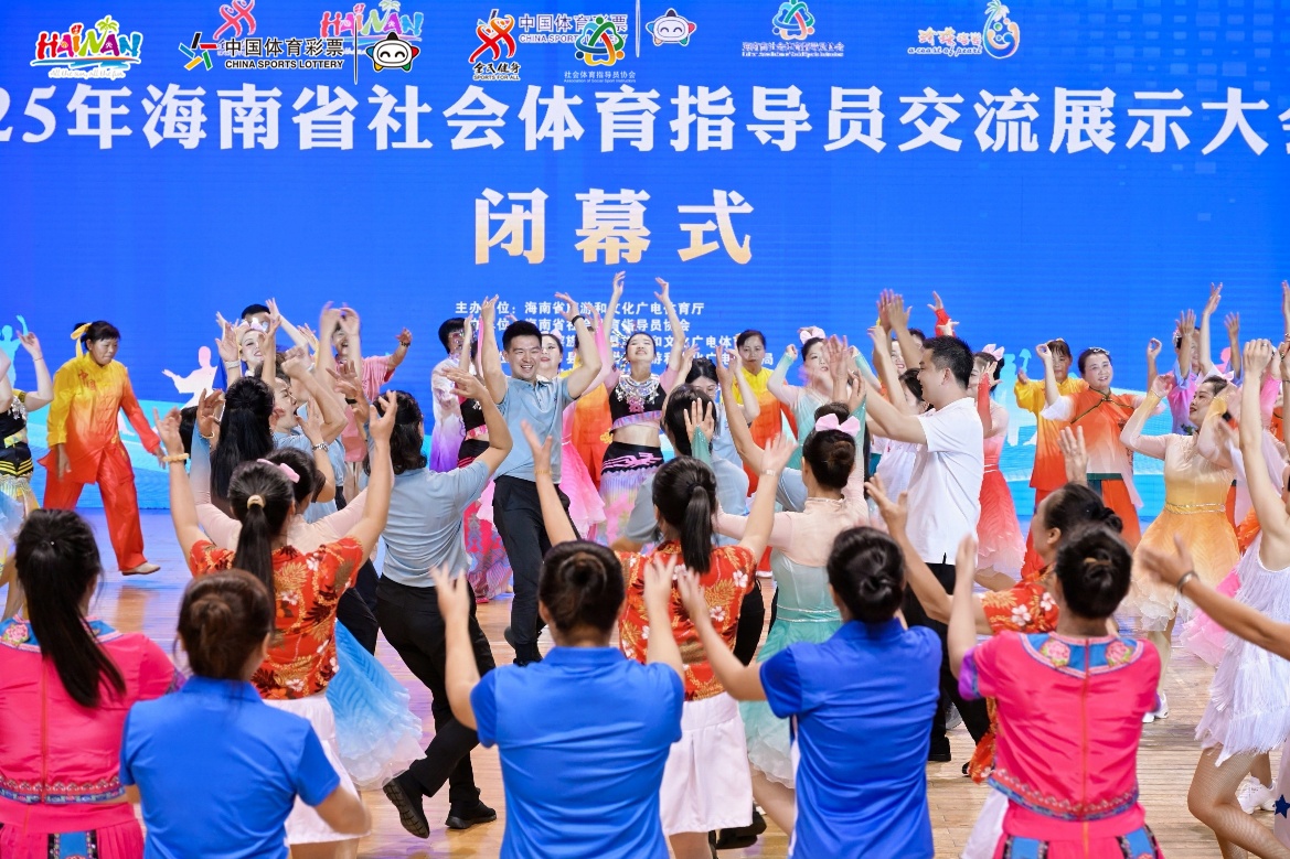 爱动体育讯 10月19日晚,2025年海南省社会体育指导员交流展示大会在陵水雅居乐体育馆圆满收官。今年这场交流展示盛会,吸引了来自陵水、三亚、定安、儋州、文昌、澄迈、万宁、东方、乐东、保亭、屯昌等11个市县,以及2家省级单项协会和1所高校的近200名社会体育指导员踊跃参与。