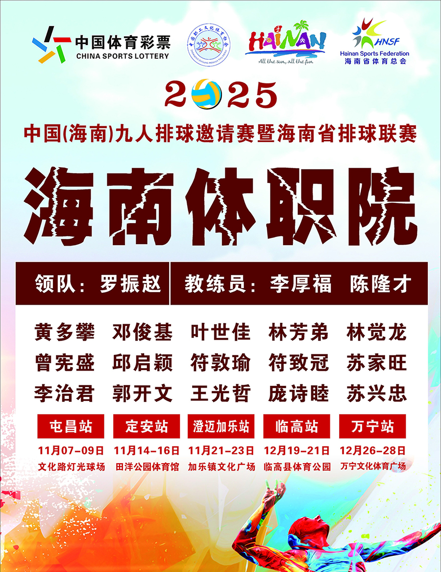 海南体育职业技术学院排球校队主教练李厚福表示:“今年学院正式成立了排球校队,本次联赛我们整合了排球校队与沙滩排球队的队员,例如邱启颖、符致冠等。我们将以学习的心态投入比赛,力争在小组赛中打出应有水平。”