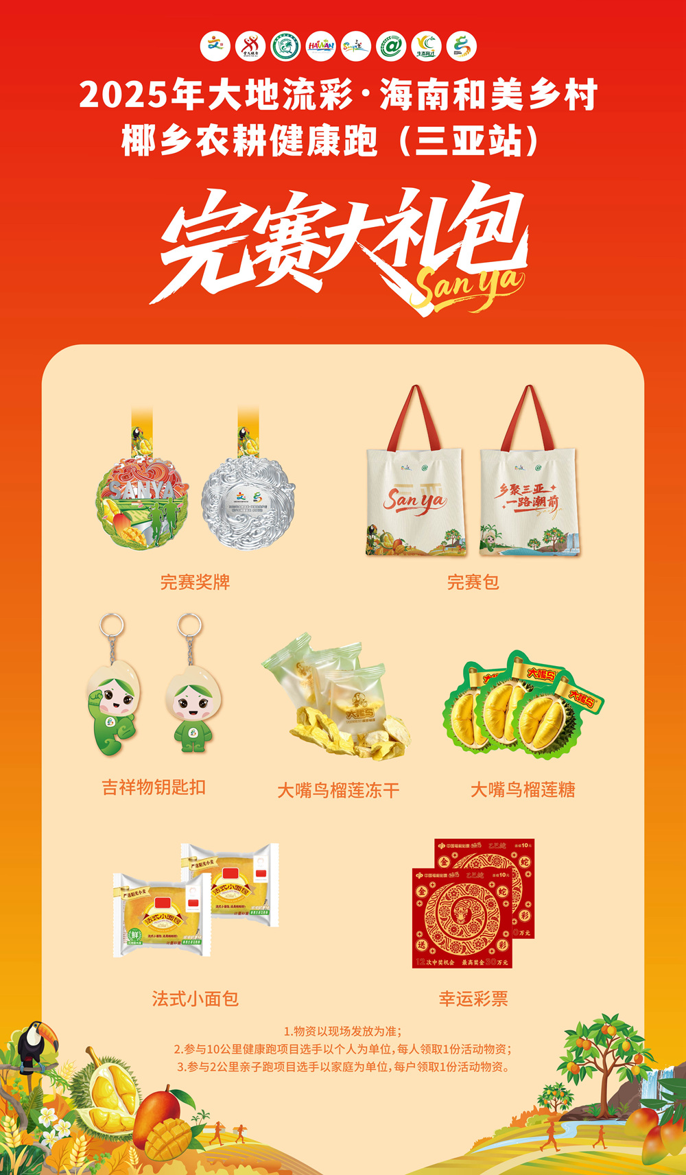 爱动体育讯 日前,2025年大地流彩·海南和美乡村椰乡农耕健康跑(三亚站)将于11月16日举行,距离开赛还有4天之际,奖牌亮相和健康跑奖品揭晓。