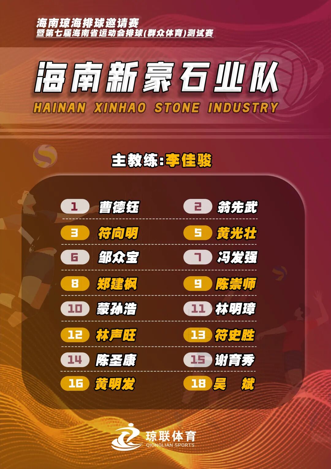 其中,海南新豪石业队由“邦哥”李佳骏挂帅。刚刚结束全运会沙排征程的翁先武、曹德钰火线归队,实力得到进一步加强。加之“海口五虎”以及邹众宝、吴斌、符向明等一众本土球星在列,堪称海南“全明星”阵容。