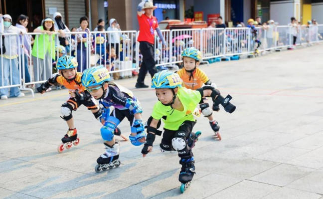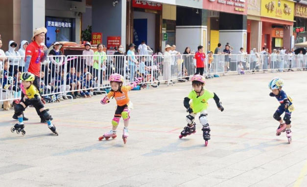 五指山站设速度轮滑与自由式轮滑,按年龄分为少年组、儿童组、幼儿组。当日,速度轮滑项目率先登场,幼儿组至少年组依次展开100米计时赛、200米计时赛、500米+D争先赛及 1000米计时赛。赛场上,小选手们精神饱满、奋勇争先,用流畅的动作与拼搏的姿态,展现轮滑运动的独特魅力,赢得现场观众阵阵喝彩。