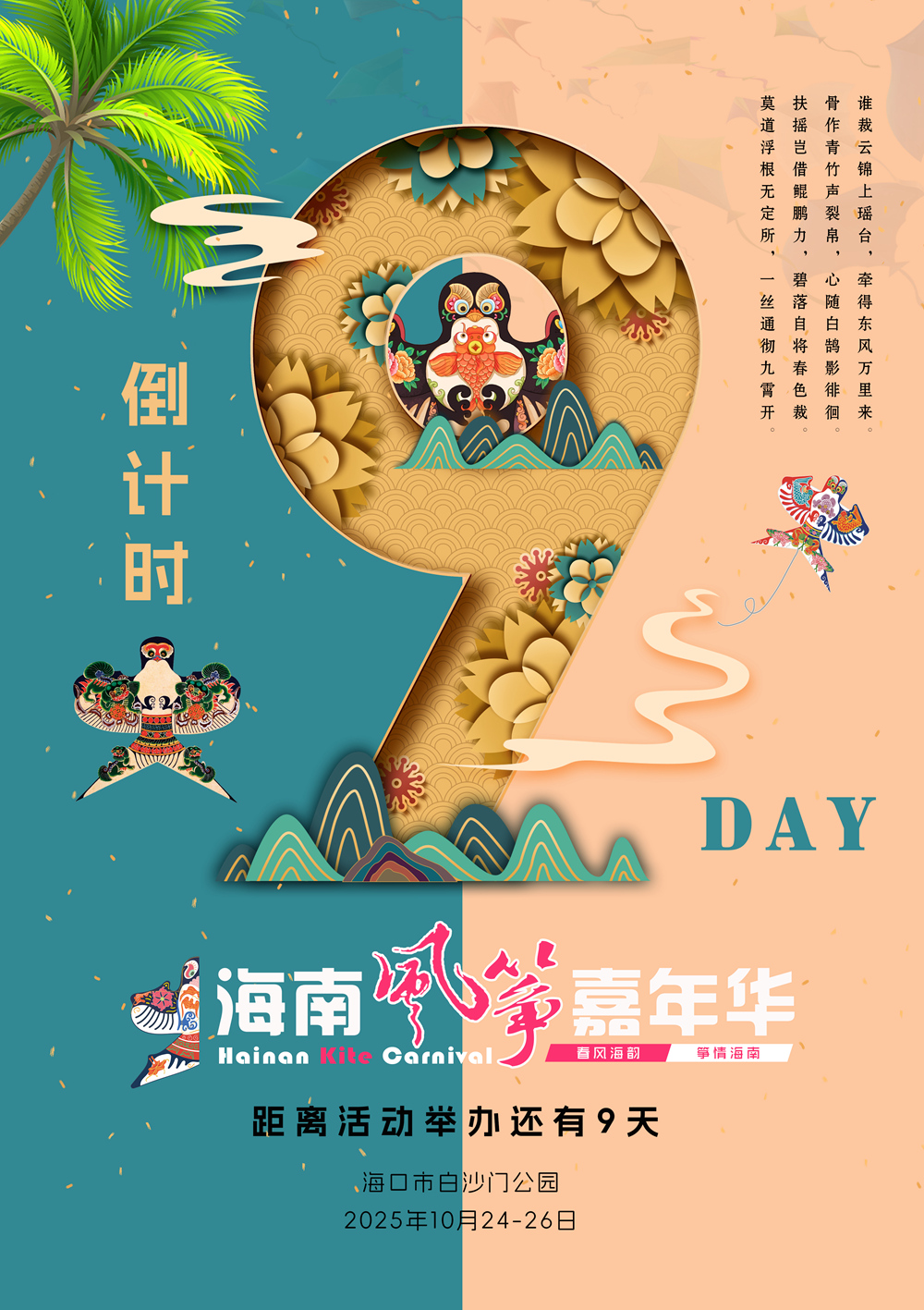 据悉,“海南风筝嘉年华”主会场活动将于10月24日-26日在海口市白沙门公园启动。活动将包括风筝比赛、非遗工坊、互动体验以及风筝文化展、风筝摄影展等丰富多彩的内容。其中,风筝比赛分为“亲子组、大众组、专业组、国际组”等,比赛项目包括板类风筝、翅类风筝、软体类风筝(单只、串类、夜光)、滚地龙风筝等四大类。