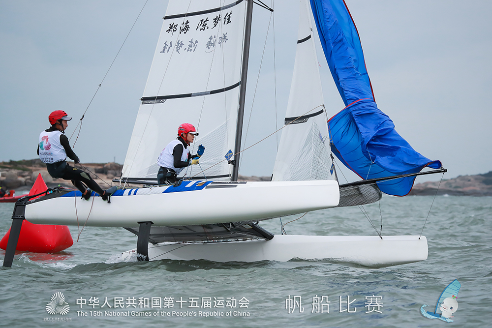 郑海/陈梦佳在比赛中。图源:十五运会帆船比赛组委会