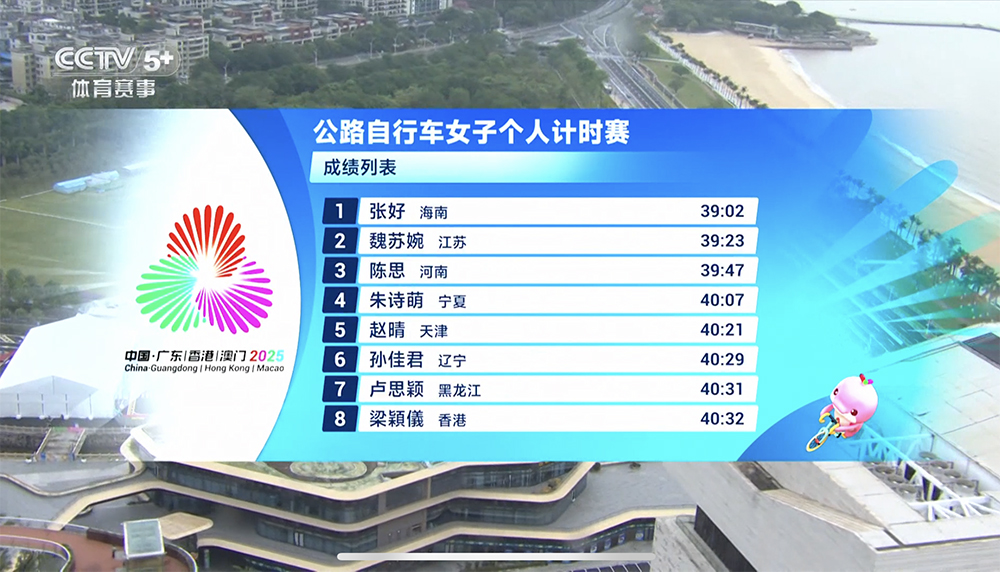 9月底,张好代表中国自行车队前往非洲卢旺达参加2025年UCI公路自行车世界锦标赛,刷新了多个计时点的最好成绩,一度成为场上排名第一的车手,这是中国车手在世锦赛计时赛中首次登上“热座”。如今,她将这一好状态延续到全运会赛场。