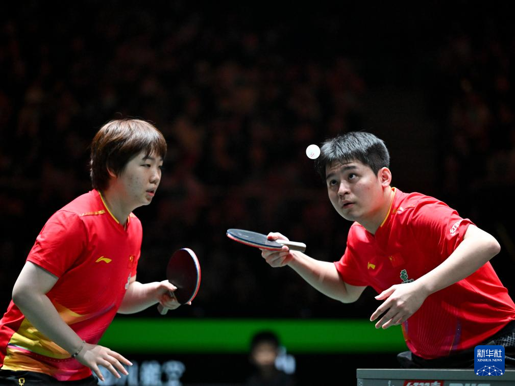 林诗栋(右)/蒯曼(左)在比赛中。图源:新华社