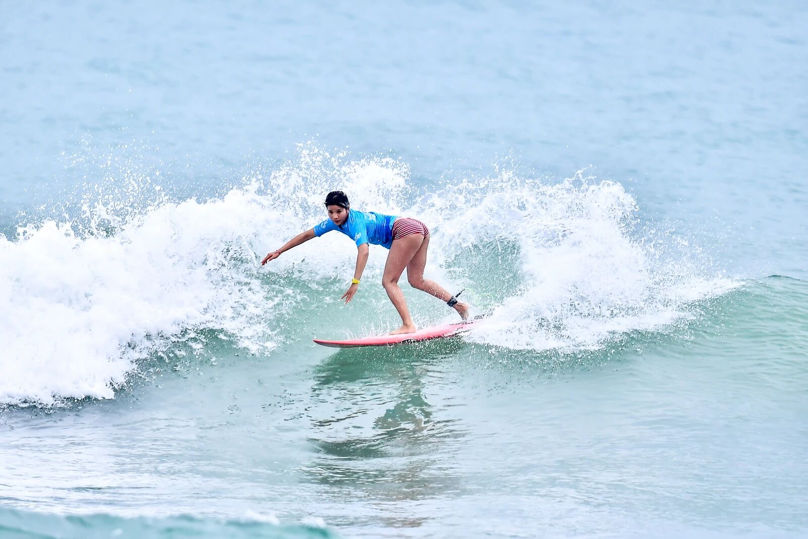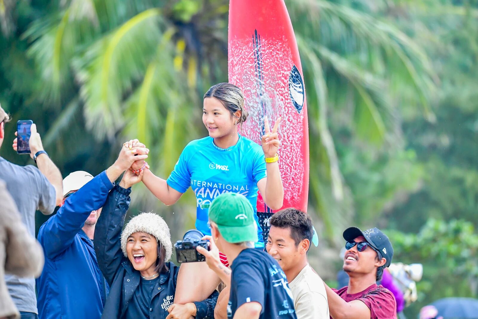 海南冲浪健儿王静微一路过关斩将,在决赛中凭借7分和6.5分的两道浪,荣获女子青少年组冠军,这是中国冲浪运动员首次在WSL赛事青少年组中折桂。
