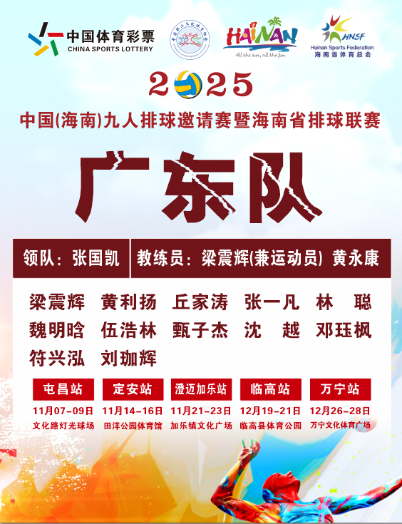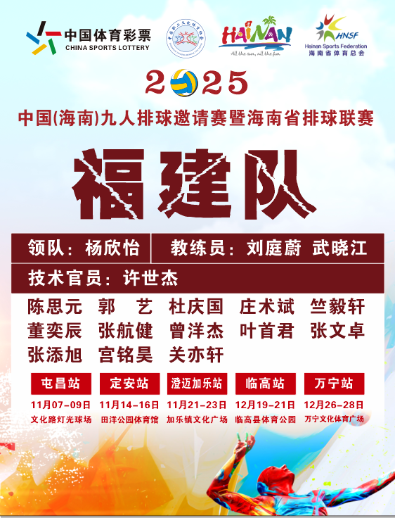 抽签仪式上同时公布了两支省外球队的参赛名单。广东队阵容中包括来自文昌的小将符兴泓,以及主攻手黄利扬、张一凡等熟悉面孔。福建队名单中则有来自北京体育大学等多所高校的学生球员。