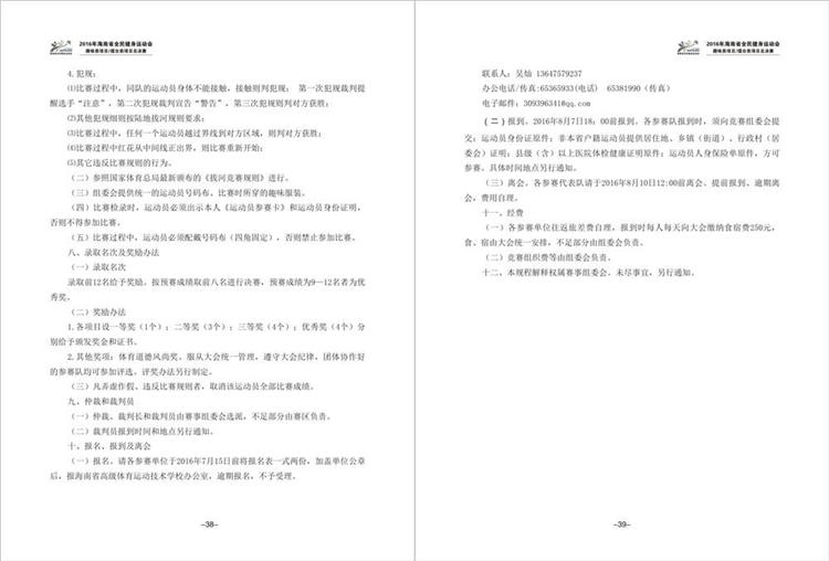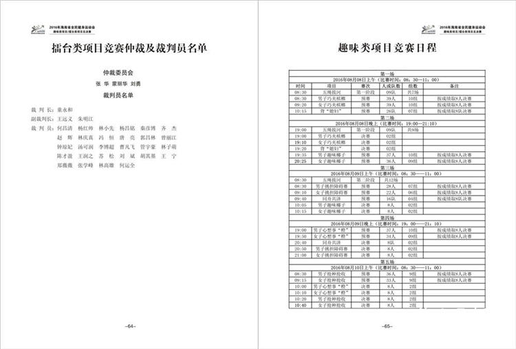 海南爱动体育讯 里约奥运点燃金色的8月,2016年海南省全民健身运动会也将在8月7日晚开幕。全民健身与奥运同行,秩序册带你一览运动会盛况,快快来收图吧。