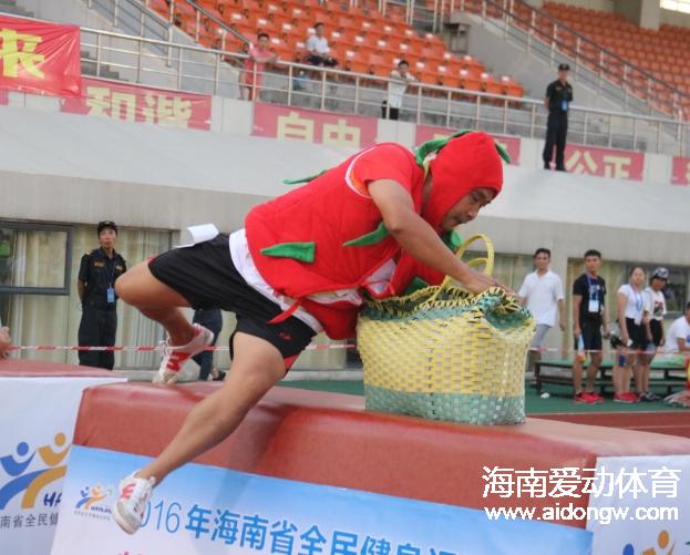 海南爱动体育讯  8月9日,2016年海南全民健身运动会趣味类男、女挑担障碍赛,同舟共济,男、女抢种抢收比赛现场欢乐多。