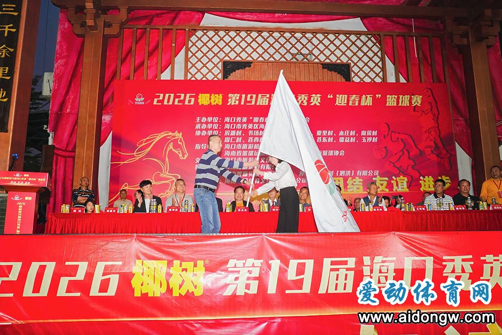 在闭幕式上,赛会举行了隆重的会旗交接仪式。水头村党支部书记陈妹将赛会会旗移交给秀英村经济合作社董事长周昌文。这标志着第20届海口秀英“迎春杯”篮球赛将于2027年移师秀英村举行。