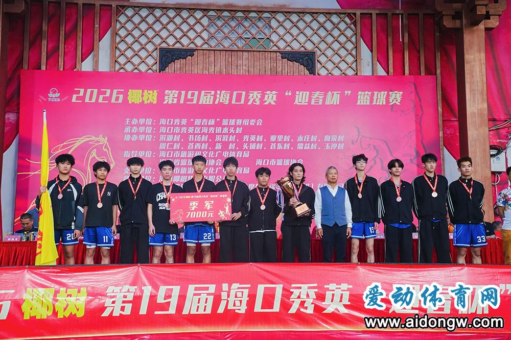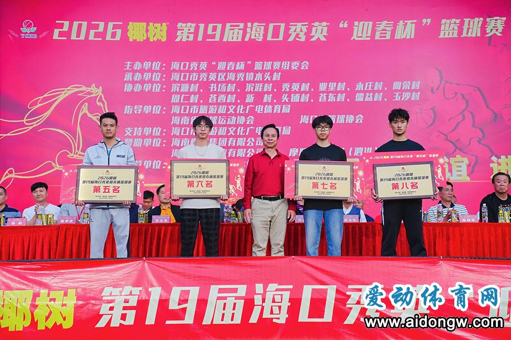 爱动体育讯 2月20日下午,海口市水头村篮球场欢呼声此起彼伏,2026椰树第19届海口秀英“迎春杯”篮球赛在此落下帷幕。决赛中,滨濂村与苍西村上演了一场跌宕起伏的激烈对决,凭借施国鹏全场轰下51分的惊艳表现,滨濂村以86:78力克苍西村,时隔六届再次捧起冠军奖杯,这也是滨濂村队史上第六次登顶。苍西村获得亚军。业里村在季军战中以88:53大胜向荣村,拿下季军,向荣村获得殿军。