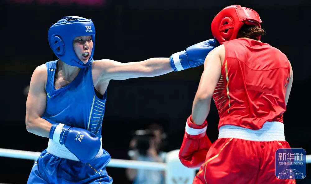 刘欣悦(蓝方)在比赛中 。图源:新华社杨冠宇/摄