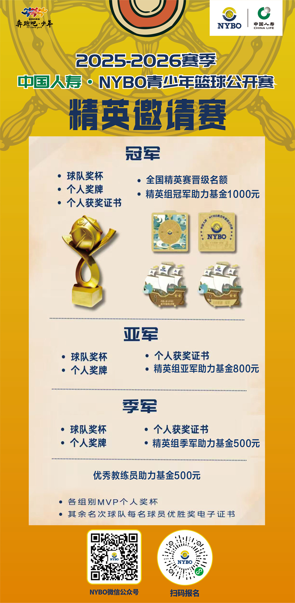 赛区相关负责人介绍,今年NYBO公开赛增加了海南省精英邀请赛,优胜队伍均可以参加全国总决赛。此外,海南省精英邀请赛的报名同时向各学校和篮球培训机构精英球队开放报名。精英邀请赛的助学基金3万元,包含了球队与优秀教练的奖金。